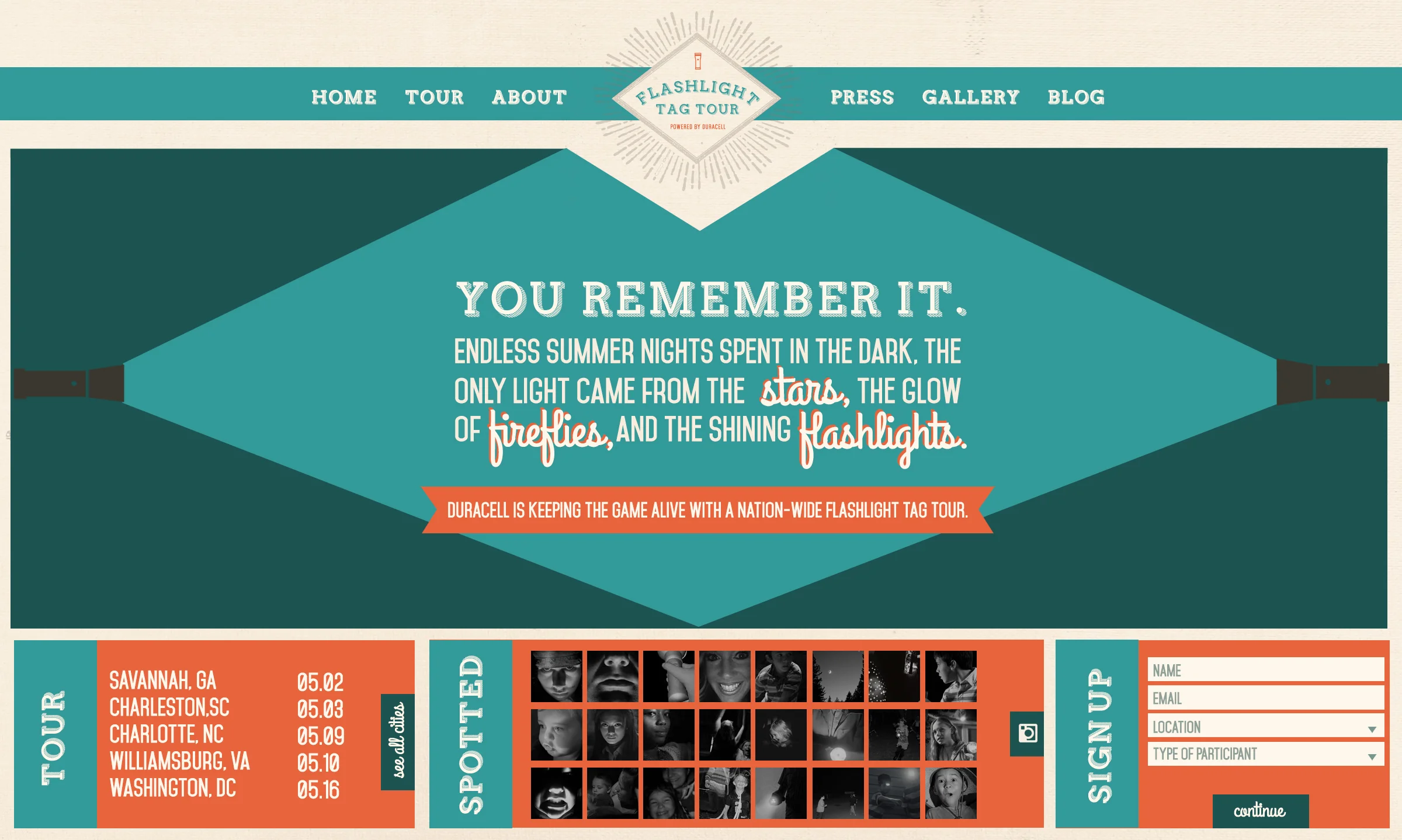 IDEA: Create a Flashlight Tag Tour, powered by Duracell. Family-friendly organized games of flashlight tag tour the country, bringing back the old-fashioned game and allowing parents to re-experience nostalgic childhood memories all over again, with their children.