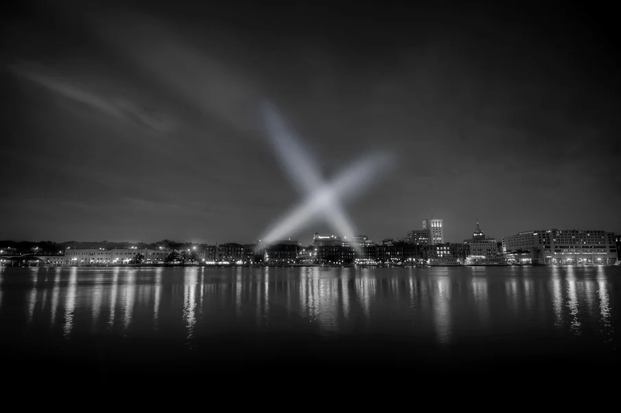 As the game approaches, more banners are placed within the city, equipped with more lights that shoot into the sky. The beams will cross one another's paths, resulting in a banner-based mock game of flashlight tag.