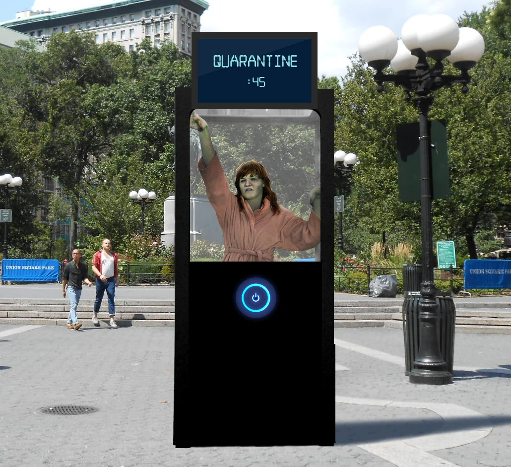 An actress will play the part of "morning zombie", confined within a quarantine box in the middle of a heavily trafficked park. Upon a bystander pushing Keurig's iconic blue button (located on the front of the quarantine box), audiences will watch as she transforms from a groaning ghoul to caffeinated and cured, in 45 seconds.
